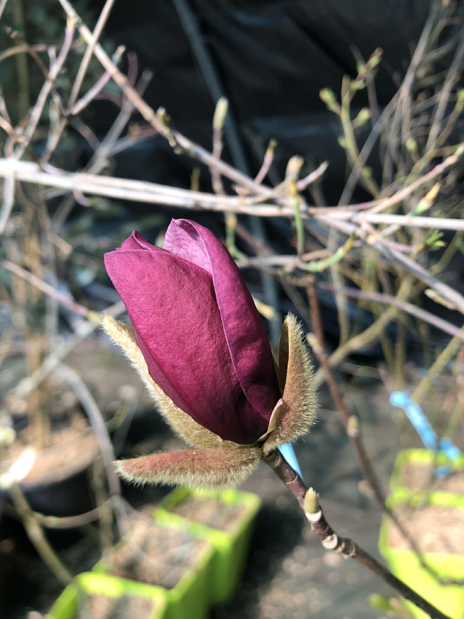 Le Magnolia Génie : est un arbuste caduque pouvant mesurer jusqu’à 3 mètres de hauteur. Ses fleurs remarquable sont grosses de couleur rouge lie de vin, légèrement parfumées apparaissant avant les feuilles. La floraison est échelonné sur le moi d’avril et mai. C’est un arbuste très rustique (jusqu’à -25 °C), qui se plait à la mi-ombre et craint la sécheresse les premières années de plantation.